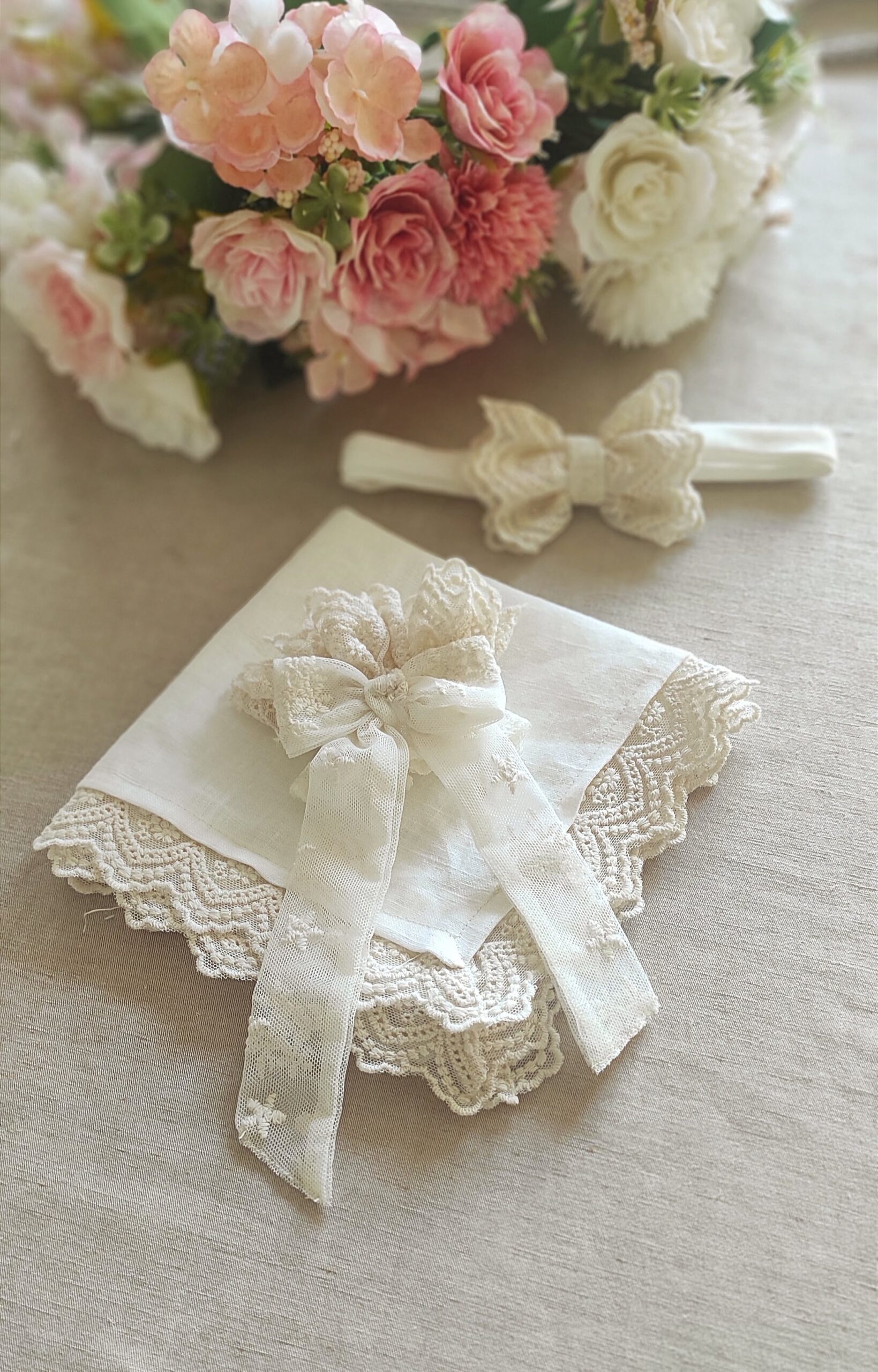Akcesoria do chrztu dla dziewczynki zostały zaprojektowane z myślą o najważniejszym momencie w życiu Twojej córeczki, dlatego szyjemy u doświadczonych krawcowych. Używamy subtelnych ozdób. Dla dziewczynki proponujemy akcesoria na chrzest, takie jak elegancka czapeczka bonetka. Delikatnie ozdobiona koronką oraz haftem. Piękna czapeczka z koronki bawełnianej, będzie stanowić wyjątkowo eleganckie okrycie głowy dziewczynki w tym ważnym dniu. Czapeczka jest uszyta z tego samego materiału, co sukienka do chrztu, która dostępna jest w naszym sklepie. Razem stworzą piękną stylizację. Ozdobna czapeczka jest cieniutka, więc Twoja córeczka się w niej będzie dobrze czuć i ślicznie wyglądać. Do tego kolorystycznie pasuje szatka do chrztu z haftem oraz osłonka lniana osłonka na świecę – profitka.
