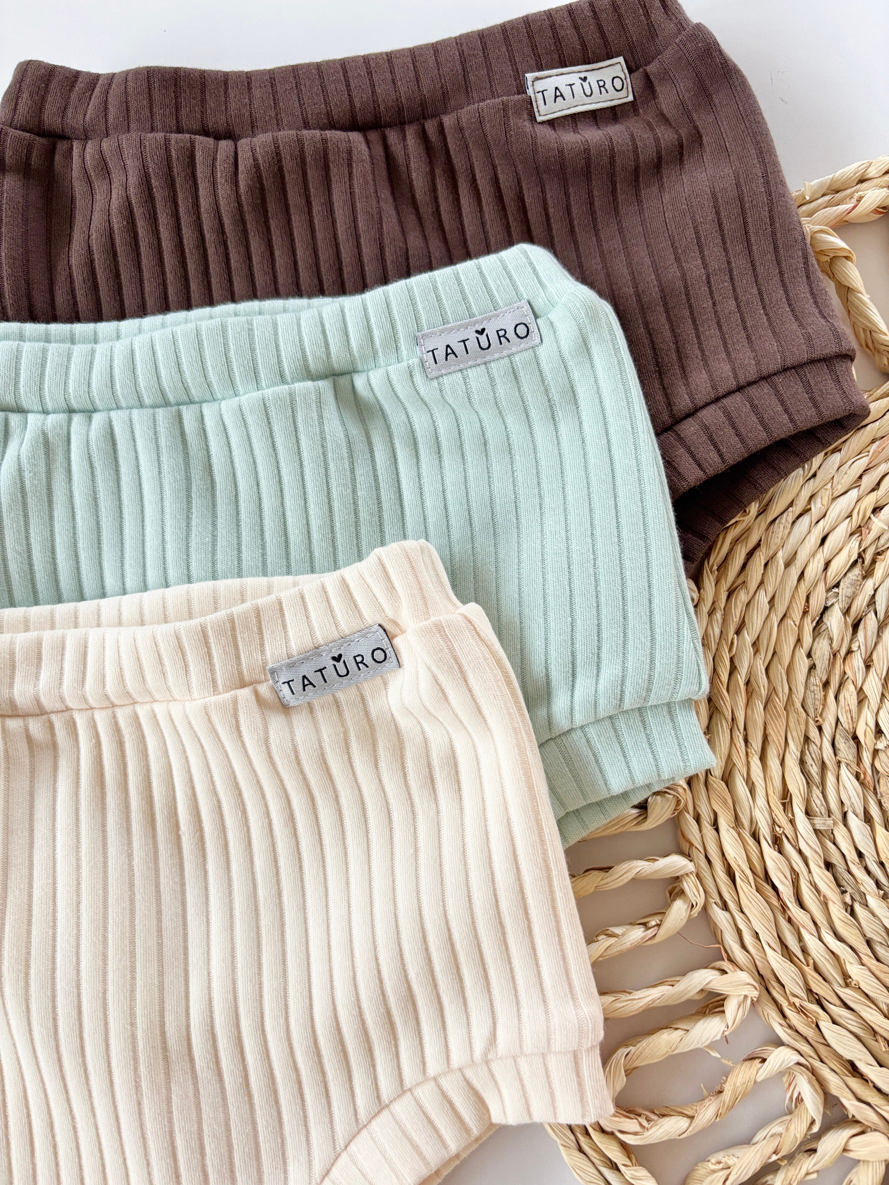 Prążkowane bloomersy dziecięce uszyte z niezwykle miękkiej, wysokiej jakości dzianiny premium to idealny wybór na cieplejsze dni. Naturalna bawełna z dodatkiem elastanu zapewnia wygodę, elastyczność i pełną swobodę ruchów.