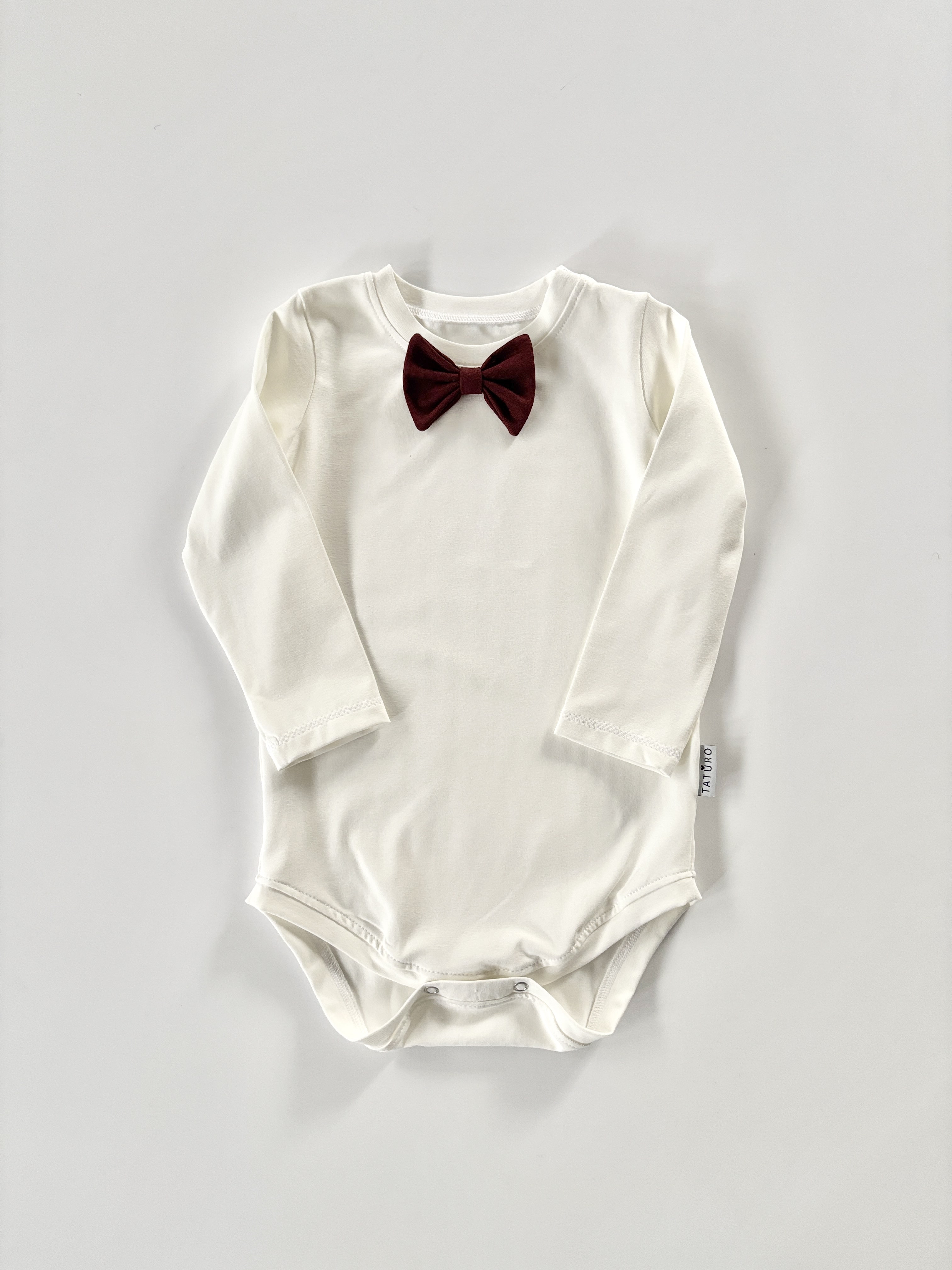 Bawełniane body niemowlęce z burgundową muchą – ecru | Oeko-Tex® Standard 100 👶✨