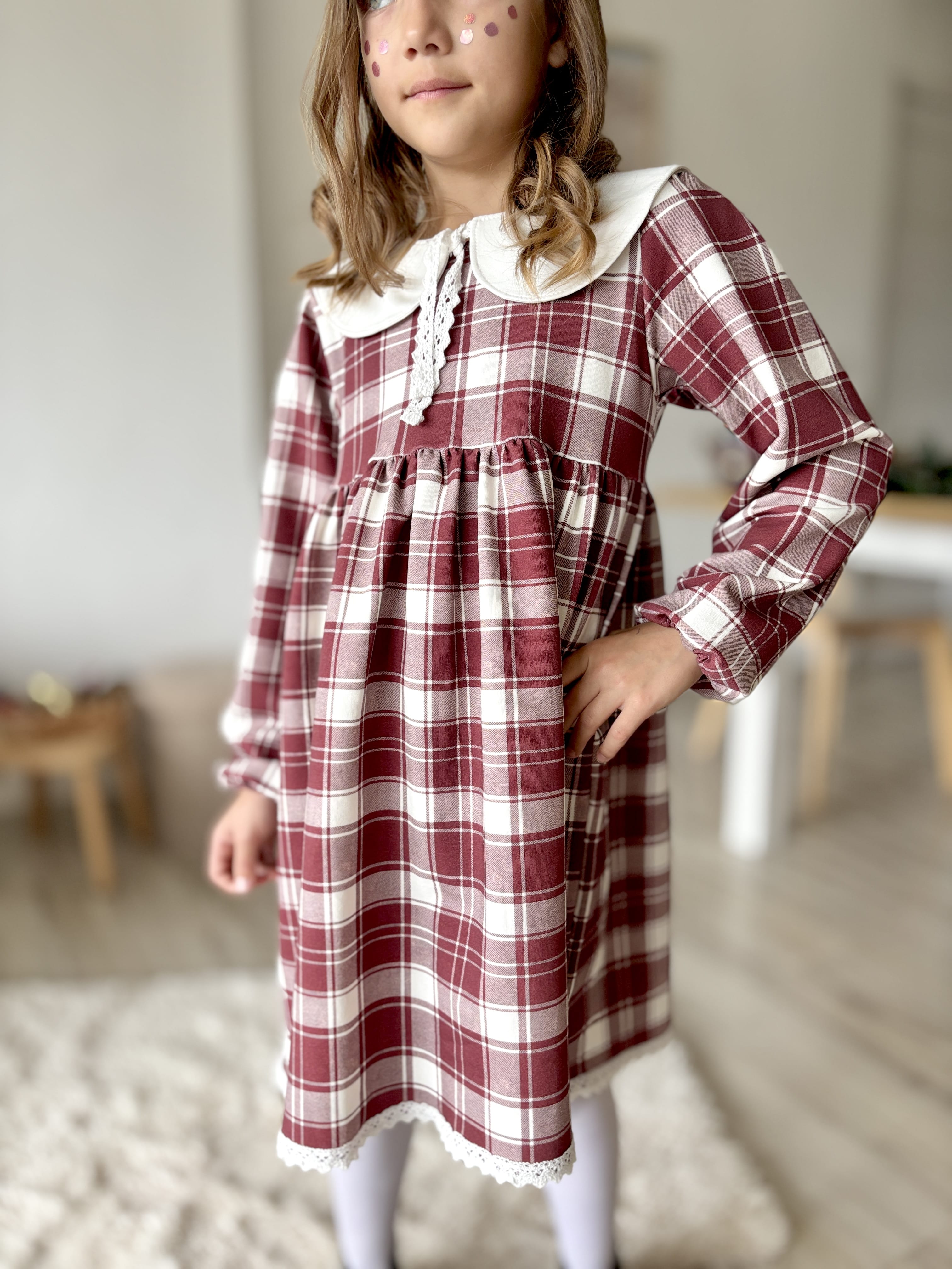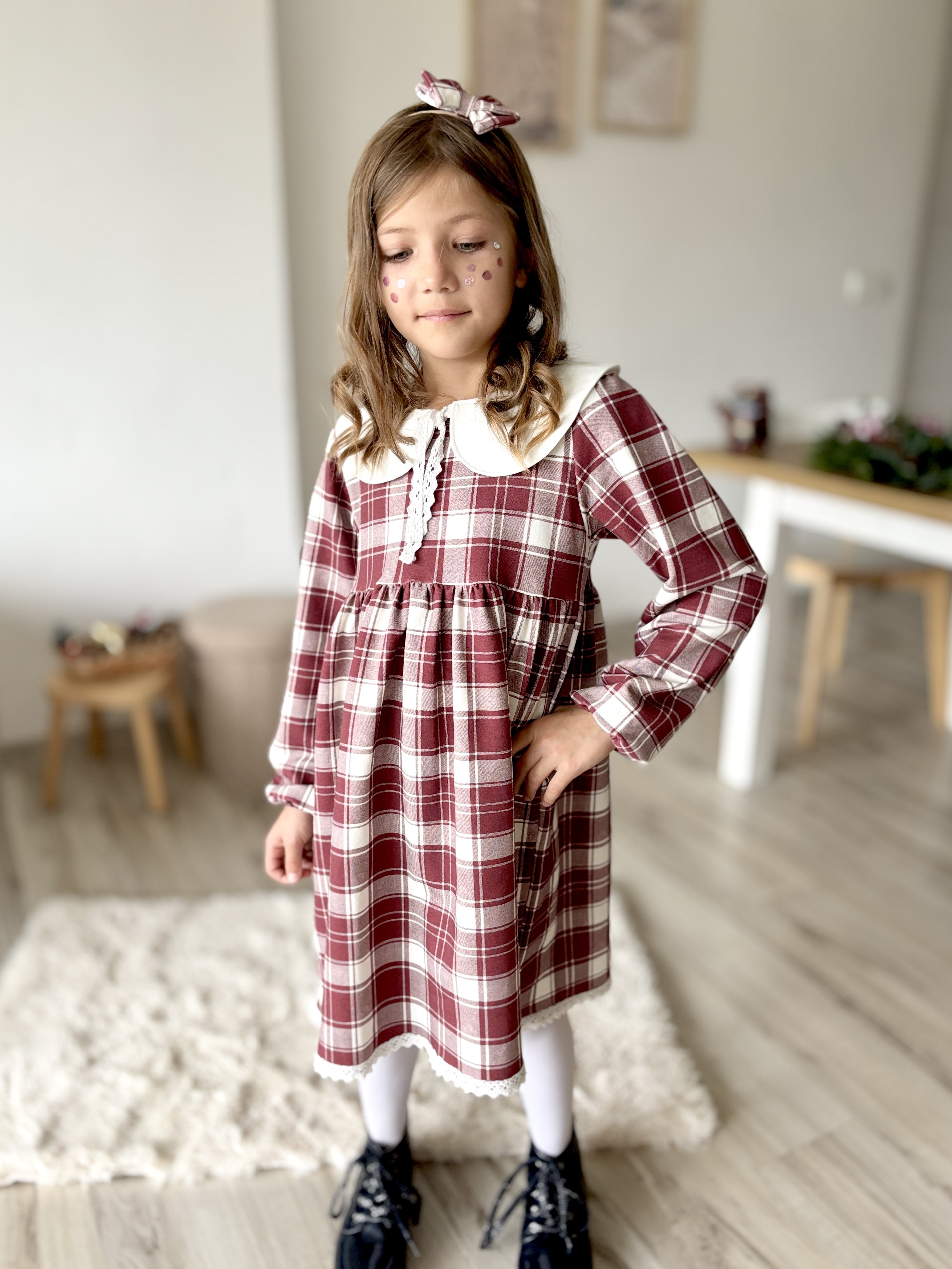 Czas na świąteczne stylizacje pełne uroku! Ta sukienka w burgundową kratę to idealny wybór dla małych dam, które chcą wyglądać wyjątkowo podczas rodzinnych spotkań i świątecznych przyjęć. 🌟